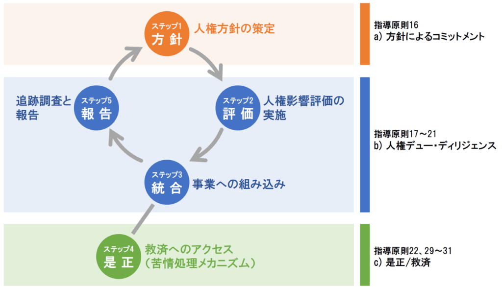 指導原則のもとに企業が人権尊重への責任を果たすための実施ステップ